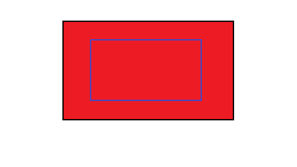 The sixth case also includes a corner case where two rectangles intersect with their corners. In this case, if the intersection of two rectangles is at the corners (the top/down-left/right corners of the rectangles), we have to calculate the entire area of the first rectangle (the blue-edged rectangle). The image below illustrates the case: